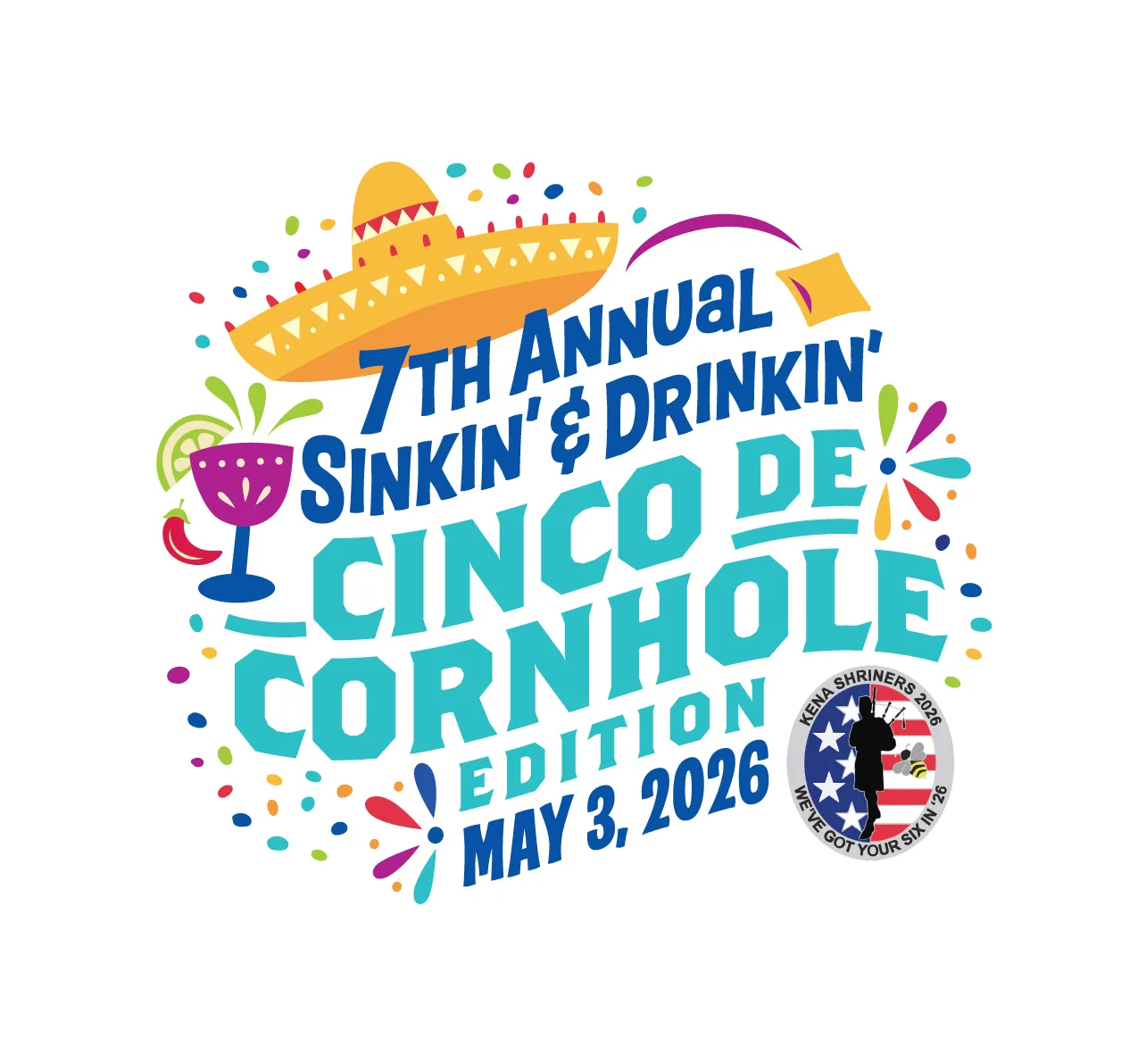 We are pleased to bring you the 7th Annual Kena Shriners Sinkin’ & Drinkin’ cornhole tournament. Along with our Social Tournament, Competitive Tournament and even a Kids Tournament, your registration includes FREE food and drink, plus a souvenir cup. You’ll also get the chance to participate in a 50/50 raffle, amazing prizes, air mail challenge, and more!